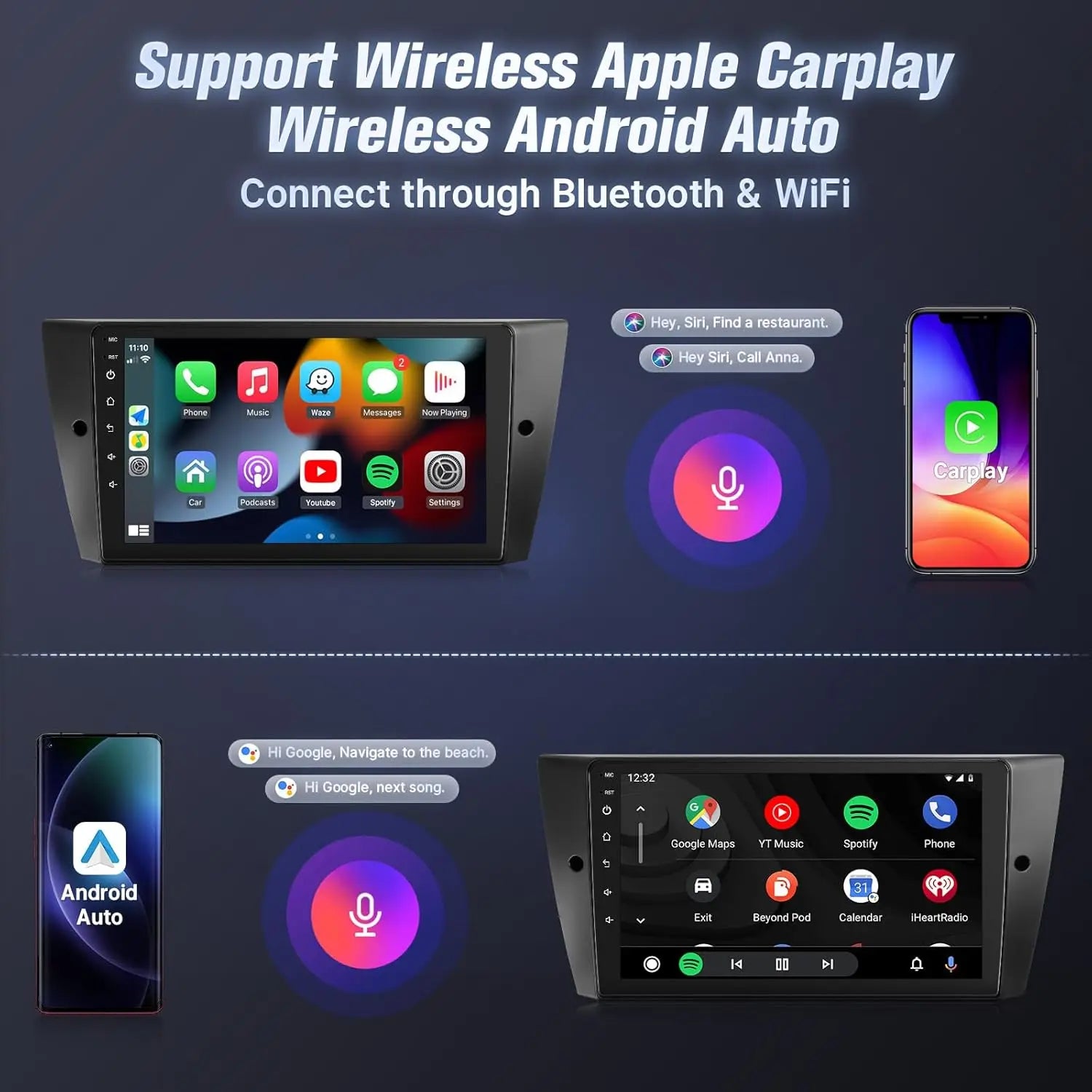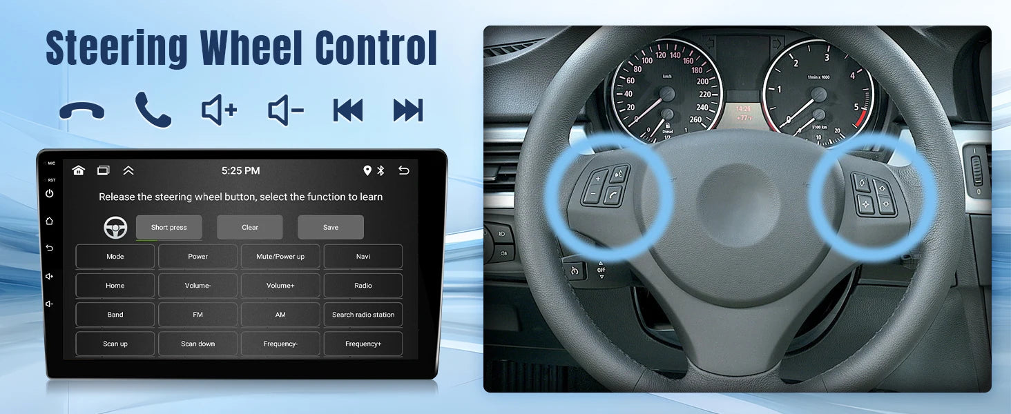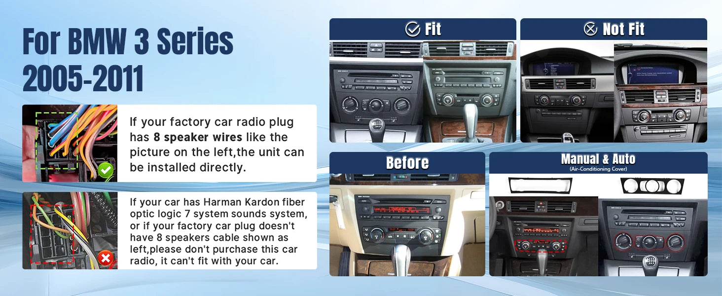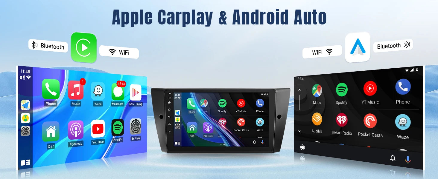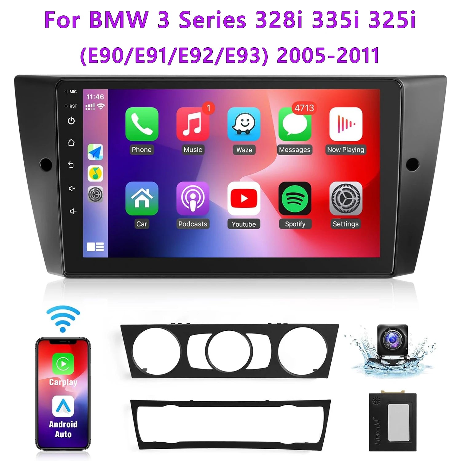 Upgrade your BMW’s dashboard with this 9-inch wireless touch screen car stereo, designed to fit 328i, 335i, 325i models (E90/E91/E92/E93, 2005–2011). Features include a responsive large display, built-in Bluetooth/Wi-Fi, 2GB RAM + 32GB storage, and a backup camera for safer parking. Enjoy modern infotainment with seamless connectivity, navigation support, and enhanced media playback in a clean, direct-fit unit.
