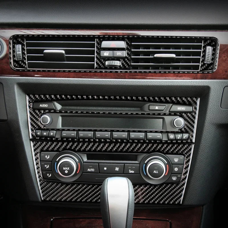Premium carbon fiber cover trim stickers designed to enhance your BMW 3 Series interior. Fits the gearshift panel, air conditioning panel, CD panel, door armrests, and other key areas for a sleek, sporty look and premium feel. Easy to install with strong adhesive — a stylish upgrade for your E90/E92/E93 cabin.